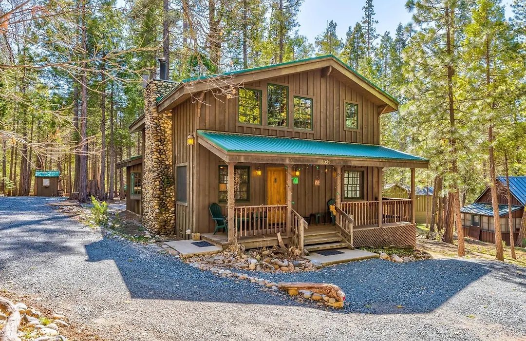 2 yatak odalı Place To Call Home - Cabin Inside Yosemite - Dog Friendly, dağa bakmaktadır. Donanımlı mini mutfak ve 2 banyo odası bulunmaktadır.